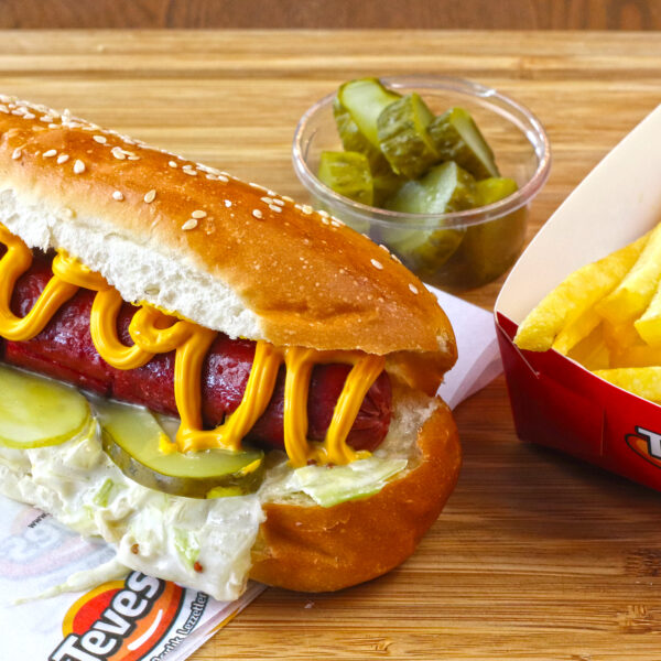 Çamlıdağ dana sosis, cheddar sos, özel dip sos, turşu
